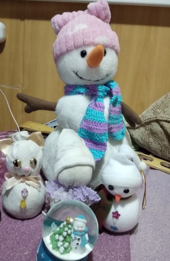 Вот такие снеговики живут у нас дома. Среди них есть и покупные, и самодельные. На улице январь, а снега у нас по-прежнему нет...