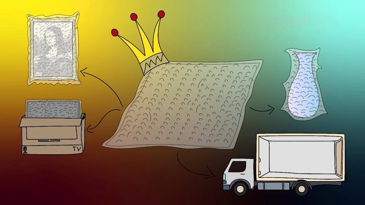 Пупырчатая плёнка, пузыри, щёлкалка — это ода ей. Почти в каждой статье мы рекомендуем использовать для чего-нибудь пупырчатую пленку. Пузырчатая пленка универсальна за счёт следующих качеств: Тем самым почти любой предмет, плотно завёрнутый в пупырчатую пленку, надежно защищен от намокания и практически любых механических повреждений. Тут честно признаемся — в хозяйстве вещь незаменимая. 1. Переезд. Подходит для бережной защиты всего: от посуды до телевизора, от драгоценностей до зеркал. Гордо упомянута почти в каждой нашей статье. 2. Утепление домов. Вы могли не знать, но «пупырку» часто используют для утепления стен и защиты кровли на дачах: тепло она сохраняет, а влагу, как мы уже сказали, не пропускает. 3. Именно поэтому может быть использована и для строительства парников. Плюс пузырчатая лента устойчива к ветру. 4. В торговле. Тут не нам вам рассказывать: сколько предметов вы покупали, которые были завернуты в старую-добрую пупырку. 5. Не можем обойти вниманием и этот, чисто мор