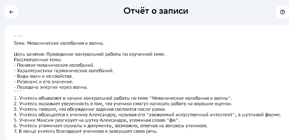 ``` 1. Учитель объявляет о начале контрольной работы по теме "Механические колебания и волны".