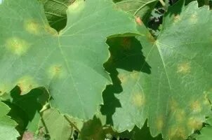 Грибковое заболевание винограда. Если вы обнаружили на нижней стороне листьев винограда белый пушистый налет, знайте – это милдью. Заболевание это очень опасное, способное погубить практически весь урожай, поражает листья, побеги, соцветия, ягоды и даже усики растения. Степень поражения этим заболеванием не всегда одинаковая. Большую роль будет играть сорт винограда и особенности погодных условий: лучше всего заболевание распространяется при обильных осадках и высокой влажности воздуха. Признаки заболевания Сначала на молодых листьях винограда появляются желтые или бледно-зеленые маслянистые пятна. Причем их форма и размер могут быть самыми разными. А с наступлением прохладной дождливой погоды эти пятна с нижней стороны покрываются белым пушистым налетом, который можно легко стереть пальцами. Со временем пораженные милдью листья приобретают желто-бурую окраску, высыхают и осыпаются. То же самое происходит и с остальными пораженными частями растения. Лечение виноградного куста пораженно