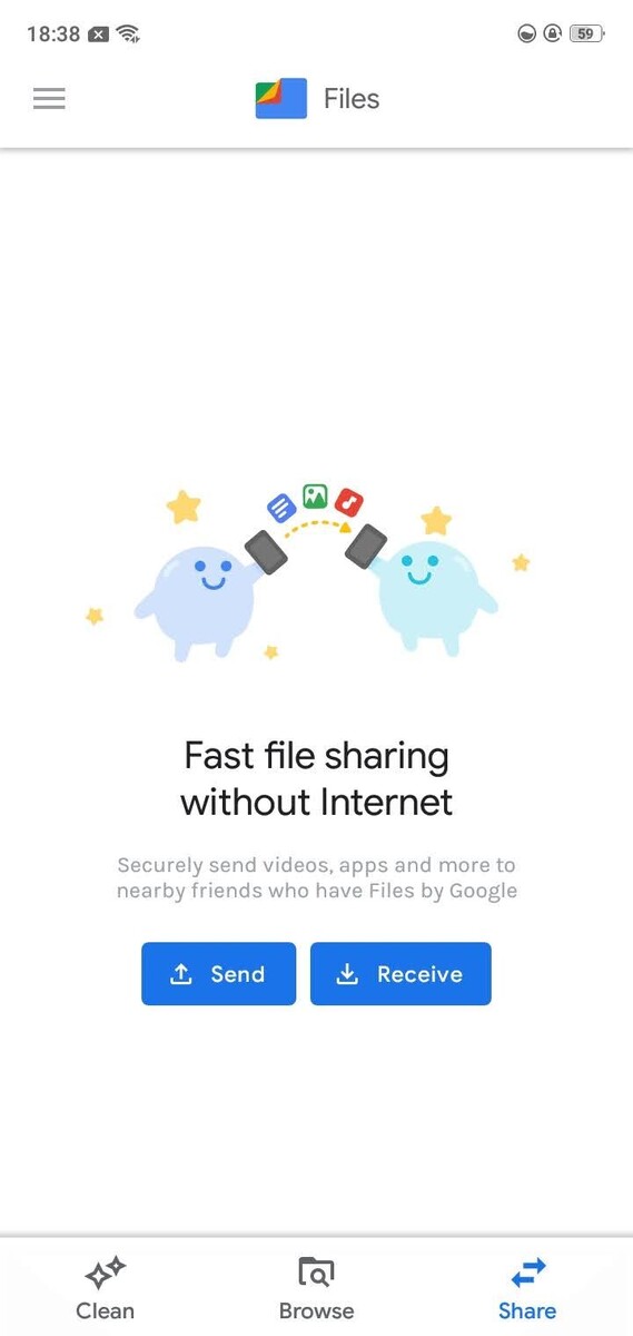 Кроме того, Files Go имеет утилиту для обмена, позволяющую отправлять большие объемы файлов через локальную сеть.