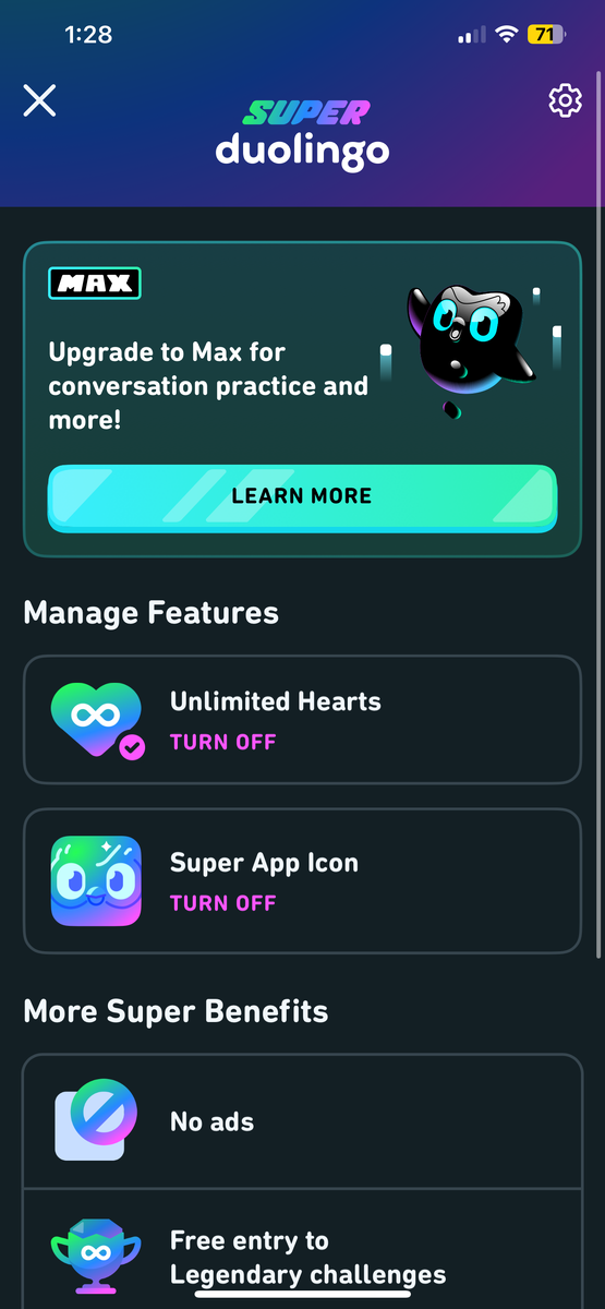 Я учу японский язык с помощью Duolingo уже более двух лет. Я хотел углублять свои знания ежедневно, поэтому наконец-то оформил подписку на платную версию Duolingo. Использование приложения для изучения японского языка подразумевает множество ошибок. С бесплатным аккаунтом у меня было всего пять сердец. Сердца исчезали с каждой ошибкой, из-за чего я часто не мог завершить урок, так как допускал много ошибок. Мне приходилось ждать несколько часов, чтобы сердца восстановились, и лишь затем я мог завершить урок, что было весьма утомительно. Из-за того, что я не мог закончить урок за один раз, я вынужден был возвращаться к первым урокам, охватывающим основы, чтобы поддерживать ежедневную активность. Это стало скучным, и вскоре я осознал, что не продвигаюсь в изучении языка. С подпиской на Super Duolingo за 10 долларов в месяц я теперь могу учиться столько, сколько захочу, не беспокоясь о допущенных ошибках. В платной подписке сердца отсутствуют, поэтому я действительно стал прогрессировать