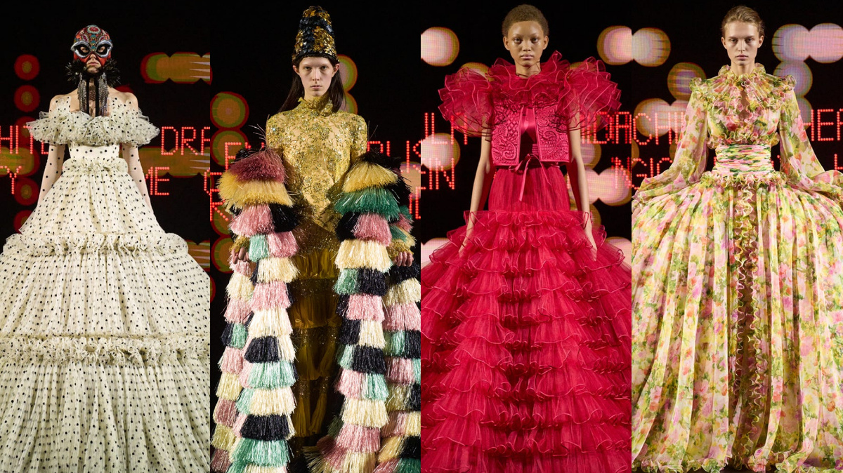 Немногие люди, работающие сейчас в сфере моды, обладают таким мозгом, как у Алессандро Микеле. Он обладает почти неестественной способностью создавать призматические миры с помощью формы или декора одежды и постановки подиумного шоу. Его проекты, созданные в последнее время в качестве креативного директора Valentino, чертовски волшебны. Сейчас мы как никогда нуждаемся в волшебстве Микеле. Наблюдение за тем, как его дебютная кутюрная коллекция сходит с подиума в Париже этим утром, стало столь необходимым отвлечением от неразберихи в мире - кратковременным бальзамом в виде странной, загадочной красоты. Коллекция называлась "Vertigineux", что в переводе с французского означает "головокружительный", и напоминала об исследовании списков итальянского семиолога Умберто Эко. Эко пишет о бесконечных качествах списка и его способности создавать культуру и порядок (иногда, но не всегда). По его словам, тексты Эко "подтолкнули меня к тому, чтобы представить каждое уникальное, конечное и