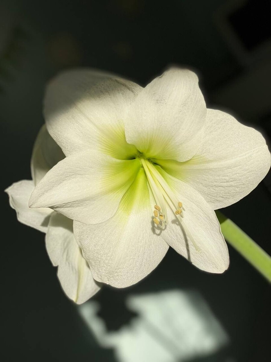 Сегодня меня порадовал распустившийся в мой день цветок! Такая красота на подоконнике посреди зимы! У него есть своя история. Это Гиппеаструм - яркое, экзотическое растение с длинным цветоносом, привлекающее к себе взгляды эффектными соцветиями и большими листьями. Растение относится к семейству Амариллисовые, часто гиппеаструм ошибочно называют амариллисом. Род включает около 90 видов, а название его происходит от древнегреческих слов «всадник» и «звезда», то есть «рыцарская звезда». Родина этого необычного цветка — Южная Америка. Приобрела я его много лет назад с цветоносом. Меня привлекли его белоснежные цветы . Однако, на следующий год он не зацвел, и на следующий тоже, и потом ещё не цвел. Я за ним ухаживала по все правилам ухода. Потом забросила (по совету моей знакомой у неё цветоносы появлялись без должного ухода). И все равно, мой гиппеаструм не хотел пускать стрелку. Листья появлялись, сменяли друг друга. Но... Я решила, что не стоит занимать место, потеряв всякую наде