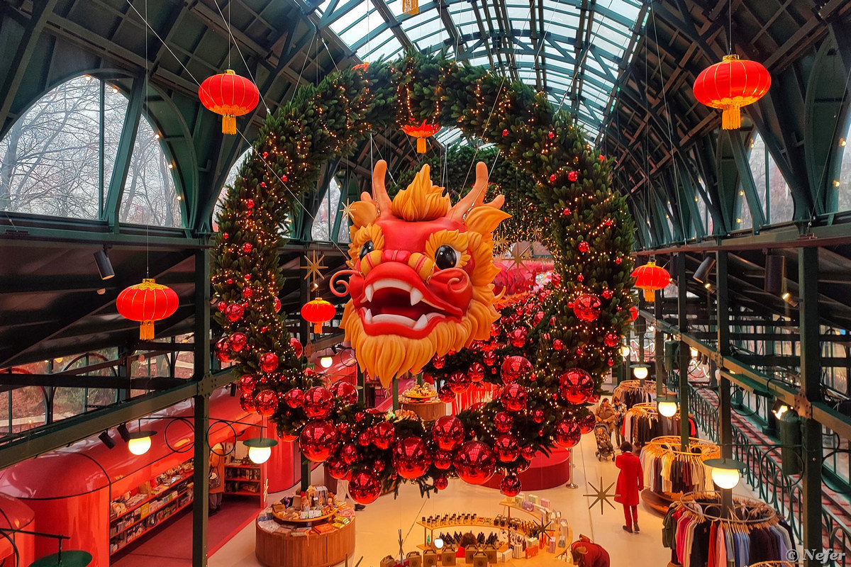 С наступлением китайского Нового года Болотная площадь изменилась. В фонтане сидит гигантская надувная змея, а сквозь еловые кольца будто бы пролетает дракон. Лунный новый год наступил 29 января. Отмечать будут до 9 февраля. Символом 2024 года был дракон, символ 2025 года - змея. Ежедневно в павильоне проводятся мастер-классы: роспись вееров, раскрашивание китайских фонариков, создание бумажных драконов и даже обучение каллиграфии. Девушка приглашает принять участие, это бесплатно. Вокруг Болотной площади ездит потешный поезд (читать тут). Покататься можно бесплатно. Просили расписание рейсов? Пожалуйста. Запоминайте и записывайте. На фудкорте тоже китайский колорит. Везде красный декор, все ярко и празднично. В Burger Heroes придумали какой-то бургер МАО. Посмотрите видео. Змея, дракон, а на катке китайская музыка и красные бумажные фонарики. Лунный Новый год считается праздником весны и отмечается во многих странах Азии: Тайланде, Сингапуре, Малайзии, Индонезии, Вьетнаме, Брунее и н