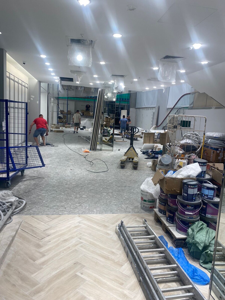Магазин стал вторым по размеру в сети «Глория Джинс» и занял площадь почти 4000 кв.м. Он открылся на месте магазина, ушедшего с российского рынка бренда. Соответственно, после капитального ремонта. Высокотехнологичность диджитал-стора предполагала длительный монтаж экранов и оборудования, и мы провели послестроительную уборку в несколько этапов. На первом этапе сотрудники компании «Балкис» привезли все необходимое профессиональное оборудование и выполнили черновую уборку: удаление стойких строительных загрязнений, остатков затирки, цементной пыли, краски, очистку стен, вентиляционных систем, кондиционеров. Затем в магазине установили оборудование с технологией lift & learn, более десяти профессиональных медиаэкранов (площадь самого большого около 36 кв.м), диджитал-инсталляцию высотой 7 м, 9-метровую цифровую фотозону и, конечно, полки и рейлы для товара. После завершения монтажных работ наши клинеры выполнили финальную, чистовую уборку: обеспыливание, мытье витрин со специальных фасад