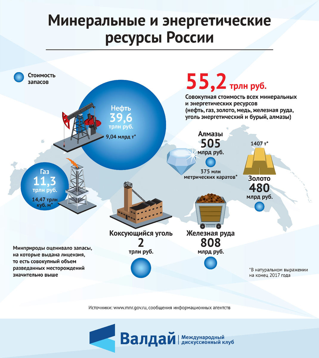 Принято полагать, что причиной военного противостояния коллективного Запада и России кроется в необходимости контролировать колоссальные минеральные ресурсы, которые сосредоточены в ее недрах. В число стратегически важных ресурсов, необходимых для развития мировой экономики, входят нефть, природный газ, уголь, редкоземельные металлы. Нефть Лидерами по добыче нефти на протяжении последних десяти лет являются Россия, США и Саудовская Аравия. Однако наиболее значительные запасы нефти находятся в Венесуэле, Саудовской Аравии и Канаде. Россия по доказанным запасам нефти расположена лишь на 8 месте, нефти здесь в два раза меньше, чем в Канаде и в пять раз меньше, чем в Венесуэле. Газ Что касается добычи природного газа – Россия является здесь безусловным лидером, однако, газ представляет ценность только тогда, когда он переработан на газовых заводах или доставлен к потребителю. Здесь Россия отстает – слишком слабые мощности по сжижению газа, а трубопроводный газ требует значительных инвести