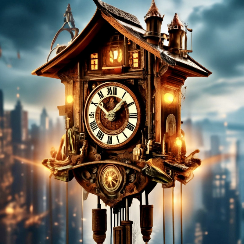 «Ку-ку, ку-ку!», скрежет захлопывающейся дверцы, резкий, громкий звук и взгляд зелёных кошачьих глаз.