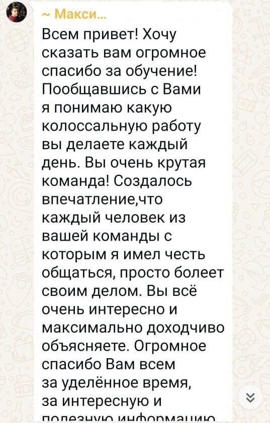Вы не можете себе представить, как нам нравится получать обратную связь от наших учеников. Нам приятно видеть, как мы являемся вкладом в изменение жизней людей в лучшую сторону. Многие ученики построили полноценный прибыльный и управляемый бизнес, который стабильно приносит им доход. Они выстроили систему, благодаря которой могут тратить меньше времени на регулярное операционное управление и посвятить это время себе и семье Многие получили востребованную профессию — менеджер маркетплейсов, и теперь могут работать из дома и зависят только от себя. Мы очень гордимся нашей обучающей программой. Это по-настоящему продукт, за который не стыдно, который дает людям возможность поменять жизнь и начать зарабатывать на маркетплейсах. Если вы хотите подробнее познакомиться с программой, то переходите в нашего бота @pixelmp_bot Переходите на наш сайт: https://pixelll-group.ru Наш телеграм канал, где мы делимся секретами продвижения на маркетплейсах: https://t.me/pgwbozon Наш инстаграм: pixel_group