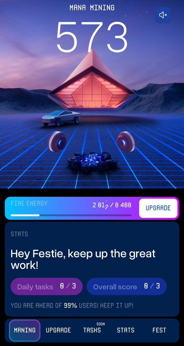 Это первый Web3 Фестиваль в мире. Если и это скамом окажется, то можно забывать про все такие проекты. На фестивали всегда выделяются приличные денежные средства для рекламы. Список партнеров, не самый превосходный, но есть достойные войны. Сам фестиваль начнется весной, точной даты нет. Сейчас заходим дуем на огонь, зажигаем пламя и копим MANA Мана будет основной валютой на этом фестивале. Вход стоит 300 звезд. Из улучшений есть поддув покупается на время Улучшение палатки, увеличивает максимальный запас энергии Быстрое горение за 150 звезд, ускоряет сбор маны Пока половину функций закрыто, но уверен скоро будут обновления! Первый в мире Web3 фестиваль, ну не может скамом оказаться, вкусняшек точно получим