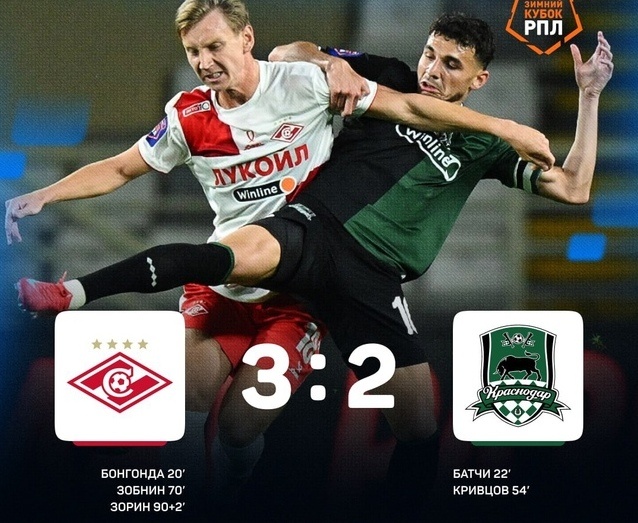 Итак, московский "Спартак" обыграл "Краснодар" в рамках, так называемого, "зимнего кубка". Игра вышла крайне напряженная и жесткая, особенно для товарищеского матча. Да и развязка не подкачала. "Спартак" забил третий, решающий мяч в самой концовке. Так, что тут мы получили еще и максимально драматичный финал. Хотя, если говорить о матче в целом, мне кажется, что "Спартак" заслуживал победы. Красно-белые играли интереснее, создали больше опасных моментов. А потому, хоть и додавили соперников под занавес матча, но результат логичен. А теперь давайте разберём встречу поподробнее. Начнём со стартовых составов. "Спартак" вышел с почти оптимальным подбором исполнителей, если ориентироваться на первый круг. Не хватало только Бабича, пропустившего игру по медецинским причинам. Однако эта, единственная потеря была заметна по ходу большей части встречи. Оборона красно-белых откровенно провисала без своего лидера. "Краснодар", в свою очередь, обошелся без серьезных потерь. Зато у них был доволь