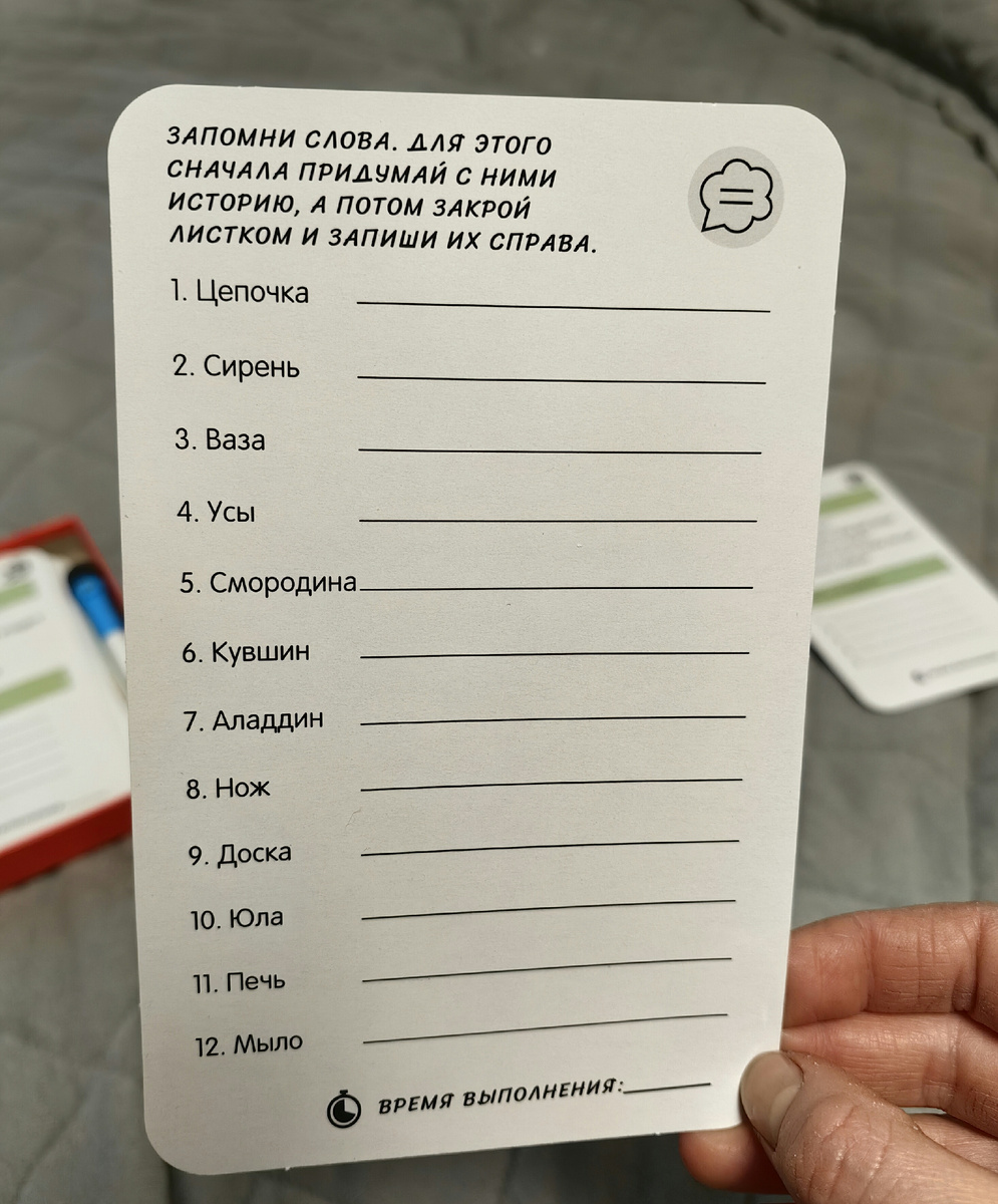 2. Дан список слов. Нужно придумать с ними историю. А потом закрыть слова и написать их по памяти.