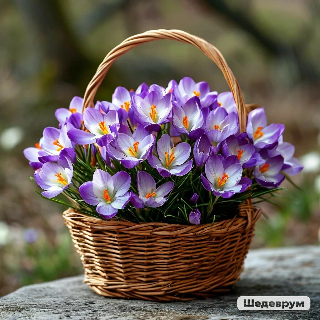Сначала открыла большую. Корзинка крокусов. Сразу запахло весной. Уткнулась носом в нежные цветочки. Хорошо!