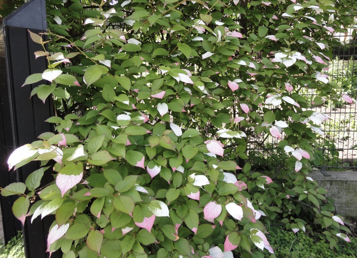 Актинидия коломикта очень декоративна. Пёстрые листья украшают растения. Так что посаженные возле беседки актинидии будут украшать её до середины сентября.