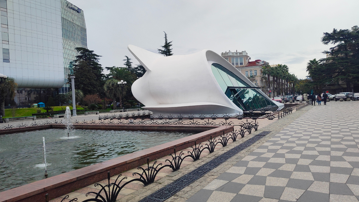 Такое нелепое здание мы увидели в Батуми - ЗАГС в форме "хрюшки", "дельфина" и т.д.