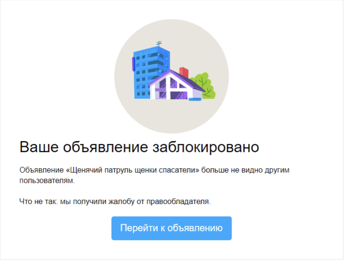 — Сделайте скриншоты: текст объявления, фото, дата публикации, уведомление о блокировке.