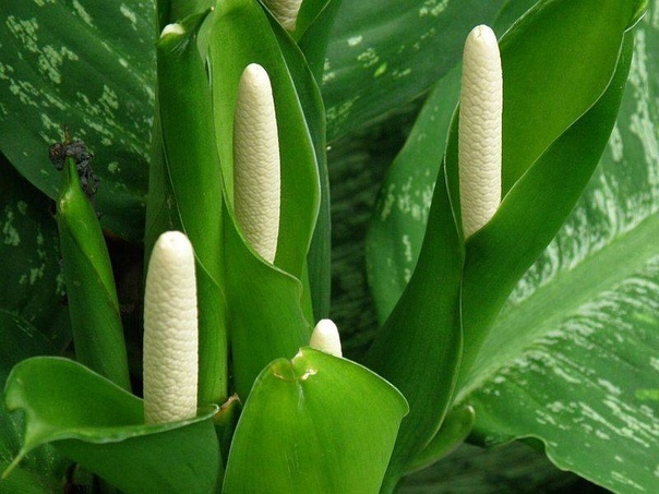 Сегодня поговорим о красавице из тропических лесов - диффенбахии. Свое название диффенбахия получила благодаря австрийскому ботанику Йозефу Диффенбаху, который был страшим садовником Императорского ботанического сада в Вене. В природе эти растения вырастают до 2-3 метров в высоту. При хорошем уходе в домашних условиях тоже можно вырастить такого гиганта. Относятся диффенбахии к семейству ароидных (туда же входят алоказии, монстеры, замиокулькасы и другие). Цветение у диффенбахии невзрачное и недолгое, поэтому его легко пропустить, но засохший цветонос оповестит вас о том, что растение цвело. В уходе диффенбахии достаточно неприхотливы, за исключением того, что они не терпят полной просушки грунта, и, если их вовремя не полить, начинают желтить нижние листья. После того, как вы приобрели диффенбахию, ее стоит пересадить в рыхлых, влагоёмкий грунт и небольшой горшок. Для почвосмеси можно использовать 40% торфа, 10% кокосового субстрата, 20% перлита, 20% цеолита, 10% биогумуса. Горшок