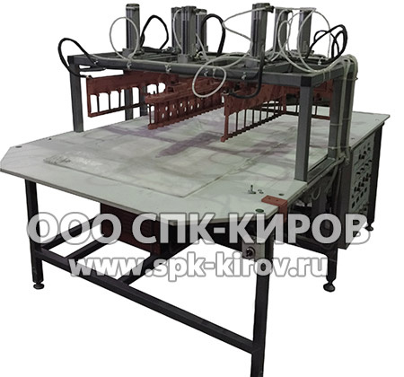 Полуавтоматический универсальный станок ПРТМК-4 предназначен для раскроя заготовок 4-строповых биг-бегов со встроенными стропами из корпуса биг-бега, а также для обычных 1,2,4-строповых биг-бегов из полипропиленовой рукавной ткани с максимальной шириной ткани 1200 мм (с фальцем), заготовок с дном "Звезда". Раскрой биг бега производится за один раз, путем простого нажатия кнопки «Пуск», остальное за вас сделает автоматика. На электронном табло регулируется время прижатия и температура нагрева. Ножи могут работать отдельно друг от друга. Модель: ПРТМК-4 (полуавтомат для раскроя ткани с приставным столом СП 3000)