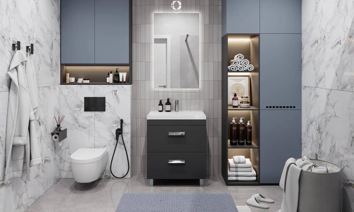 Ванная комната — это то место, где мы начинаем утро и можем расслабиться после сложного дня. Однако, в отличие от других комнат, здесь часто не хватает свободного места для вещей. Разместить средства для ухода, косметику, полотенца, бытовую химию, разные мелочи и не потерять эстетичность довольно не просто. Решить этот вопрос позволяет мебель с функцией скрытого хранения. Что собой представляет скрытое хранение? Вариант организации системы хранения на закрытых полках и ящиках. Благодаря этому легко поддерживать порядок и сохранить эстетику интерьера. А еще очень удобно и далее расскажем почему. Скрытая система хранения обладает целым рядом преимуществ: Удобство. Для каждой вещи найдется свое место. Так соблюдать порядок и найти необходимый предмет будет намного удобнее. Порядок. Множество баночек, тюбиков и других мелочей создают визуальный шум и ощущение беспорядка. Закрытые шкафы и тумбы помогают избавиться от зрительного диссонанса и сохранить единый стиль интерьера. За дверцами шка