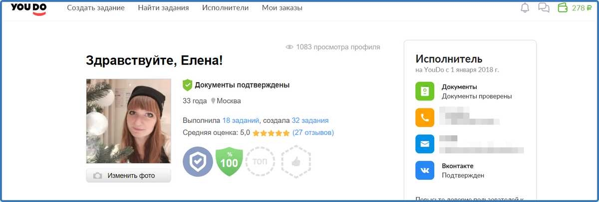 У меня там еще осталась денежка, могу ее потратить и подработать через этот сервис, когда будет время и желание. Кроме того, когда я работала в офисе, я сама создавала задания, когда мне нужен был курьер. Мой рейтинг как заказчика и как исполнителя идеальный, 5 звёзд, я ответственный человек.