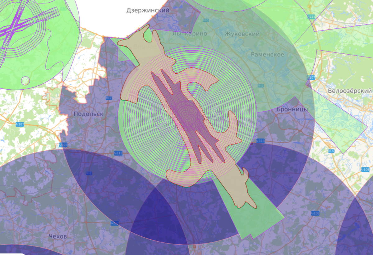 На Геопортале Подмосковья появилось графическое отображение границ 7 подзоны приаэродромной территории аэродрома Домодедово. Седьмая подзона аэродрома Домодедово состоит из 2-х зон: 1. Зона 7.1 "Зона запрета строительства нормируемых объектов" (внешняя граница соответствует изолинии Ljn = 61 дБА при полетах воздушных судов) – фиолетовый цвет зоны. Содержание ограничений: В границах зоны не допускается новое строительство зданий больниц, санаториев, жилых домов, домов отдыха, пансионатов, домов-интернатов для престарелых и инвалидов, общежитий, стационарных организаций социального обслуживания, организаций для детей-сирот и детей, оставшихся без попечения родителей, дошкольных образовательных организаций и общеобразовательных организаций; не допускается новое строительство поликлиник, гостиниц, конференц- залов, библиотек, кафе, ресторанов, столовых, театров и концертных залов, многоцелевых залов, спортивных залов, магазинов, пассажирских залов аэропортов и вокзалов, предприятий бытовог