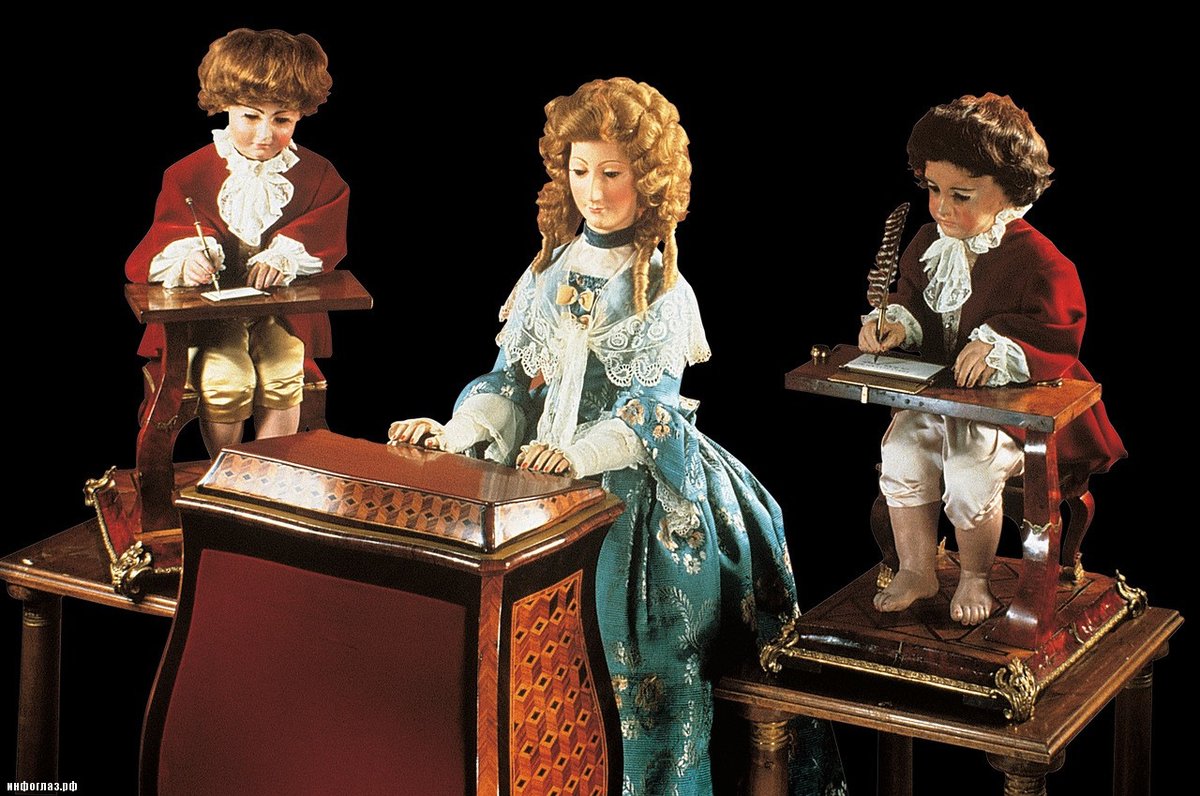 По сути, это были программируемые устройства — например, созданный в 1772 году «Писатель» (часто эту куклу называют также «Каллиграф», иногда — «Писец»), самая сложная и совершенная из всего, что он сделал, могла писать 40 текстов, обмакивая перо в чернильницу и стряхивая с пера капли, и следила глазами за письмом.