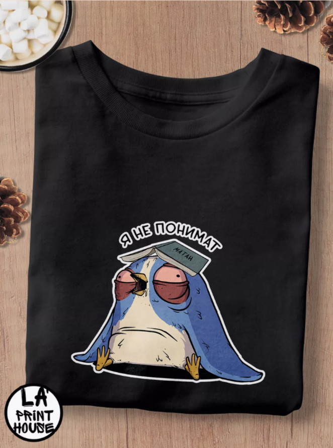 Выбор подарка для одногруппника — дело тонкое. Это должен быть баланс между дружеским подколом и практичной вещью, которую он действительно будет носить. И вот тут на сцену выходит эта великолепная футболка с угрюмым пингвином и надписью "Я не понимат". Признайтесь, сколько раз вы видели на паре одногруппника с таким же выражением лица? Матан, физика, философия… В любом предмете можно найти момент, когда ты просто смотришь на доску, а в голове — пустота. Как будто кто-то форматнул тебе жёсткий диск прямо перед парой. Эта футболка идеально передаёт состояние студента в любой учебной ситуации. Ваш друг надел футболку, сел на первую парту — и вот уже преподаватель видит явный сигнал: «Я не понимат». Может, он сжалится и объяснит тему ещё раз. А вдруг даже поставит зачёт авансом за искренность? Главное, не переусердствовать — если надеть её на экзамен, можно поймать взгляд сочувствия и лёгкий смешок, но оценку это не спасёт. — Слушай, классная футболка! Где купил? — Я не понимат. Разговор