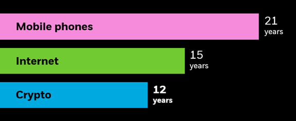 По данным BlackRock, всего за 12 лет число пользователей цифровых активов достигло невероятных 300 миллионов. Для сравнения, мобильные телефоны преодолели эту отметку за 21 год, а интернет — за 15. Почему же биткоин и другие криптовалюты так стремительно распространились? Эксперты выделяют три ключевых фактора: Цифровое поколение: Молодёжь, выросшая в эпоху технологий, активно внедряет криптовалюты. Глобальные вызовы: Риски инфляции, финансовая нестабильность и политические разногласия лишь усиливают интерес к биткоину как к децентрализованному активу. Будущее финансов: Цифровизация экономики и развитие инфраструктуры криптовалют открывают новые горизонты. На конец 2024 года количество пользователей криптовалют в мире варьируется от 420 до 617 миллионов, с активными участниками в диапазоне от 30 до 60 миллионов (максимум 1% населения)! Но задумайтесь: с учётом того, что доступ к интернету и телефонам имеют примерно 60-80% населения, какие же будут цены на биткоин, если хотя бы 10% стан