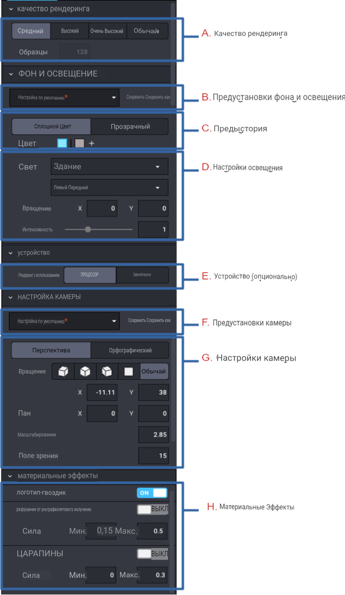G. Настройки камеры