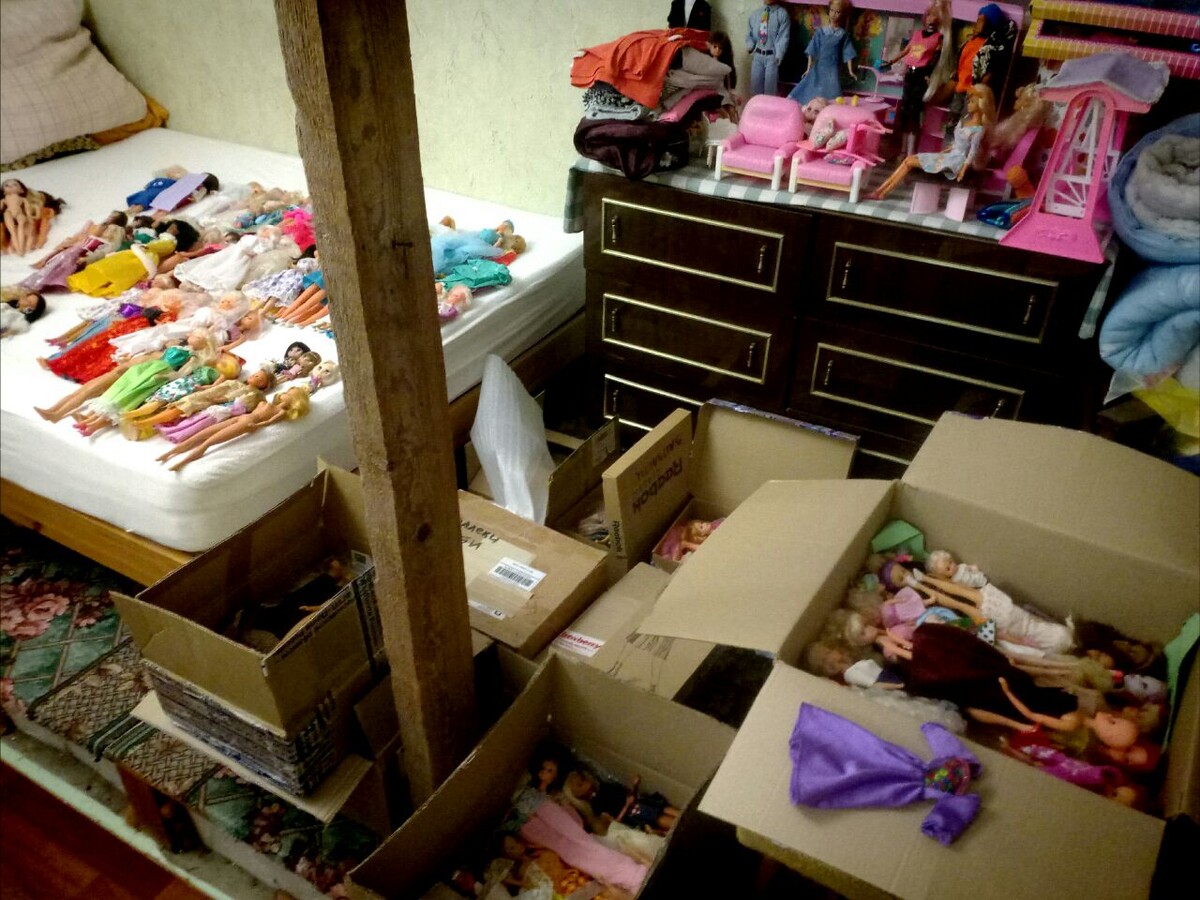 Пока разбирала, нашла одну напрочь забытую Барби (чуть целенаправленно не купила ее клона), обнаружила два неучтенных дубля и поняла, как много кукол скопилось под ремонт.