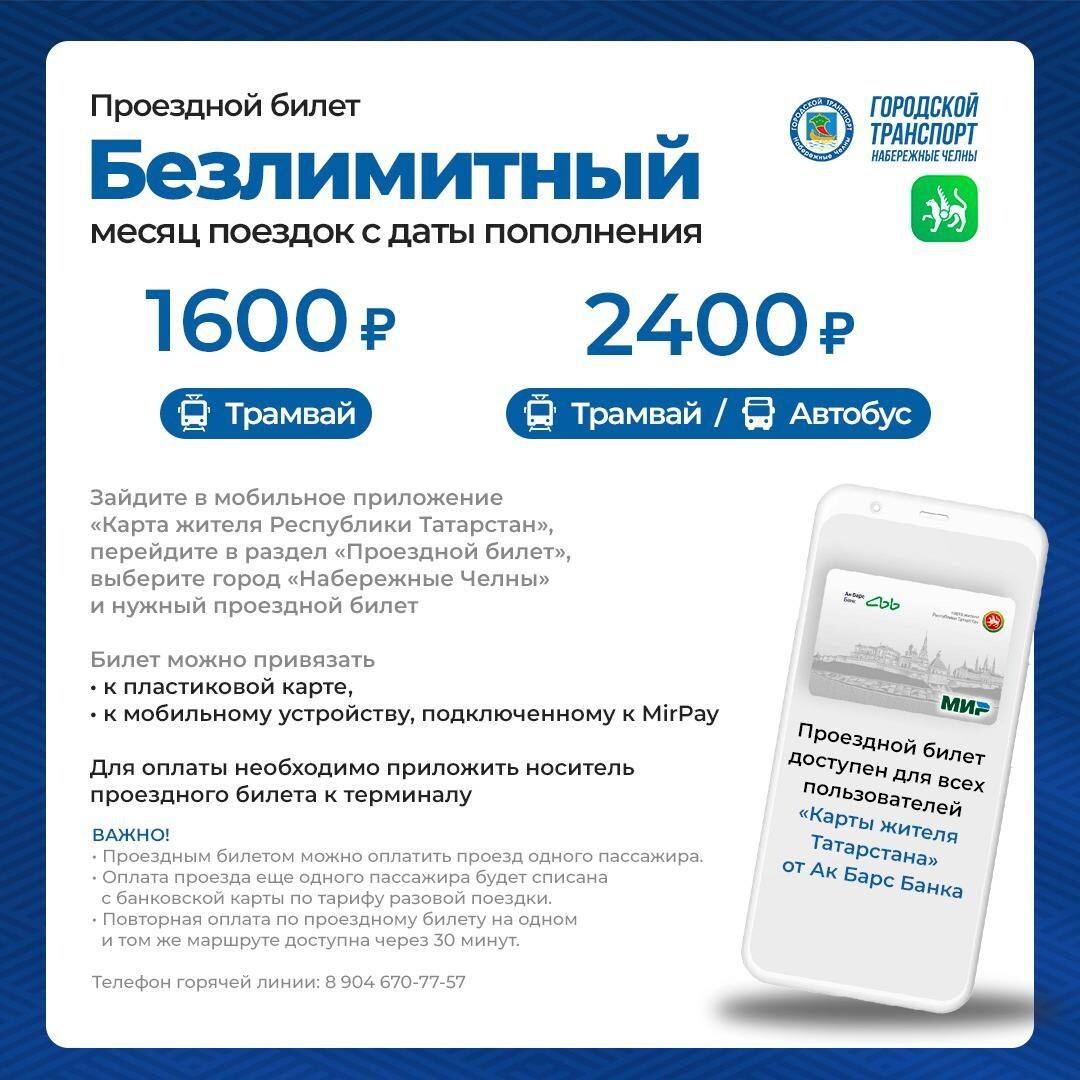 Глава исполкома Набережных Челнов Фарид Салахов рассказал, как использовать «Карту жителя Республики Татарстан», выпущенную «Ак Барс Банком», в качестве проездного. Для этого необходимо скачать приложение «Карта жителя Республики Татарстан», перейти в раздел «Проездной билет», выбрать город Набережные Челны и нужный тариф проездного. Проездной билет можно привязать к физической карте и мобильному устройству, подключенному к MirPay. Важно учесть, что проездным билетом можно оплатить проезд одного человека, следующая оплата будет списана с банковской карты по тарифу разовой поездки. Повторная оплата по проездному билету на одном и том же маршруте доступна через 30 минут.