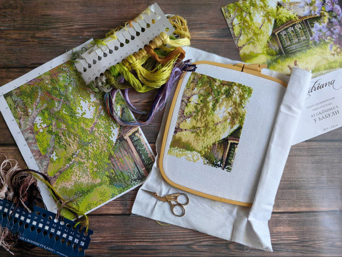 Этот сюжет был любовью с первого взгляда. Ожидание старта меня мотивировало на то, чтобы скорее закончить текущий процесс. Знаю, что у многих этот сюжет лежит в хотелках или ждет своего старта. Теперь, когда вышит достаточно большой участок, я могу рассказать про то с чем я столкнулась, о плюсах и минусах, ну и в целом об ощущениях. Первое, что бросилось в глаза на старте - основа. Она плохая. Сложно объяснить, что именно не так. Вот, например, я обычно покупаю гамму разного каунта, нравится, такая она плотная, жесткая. А тут "жиденькая", сыпется с краев, очень мягкая. Конечно, можно было бы ее заменить, но нужного отреза у меня не было, а ждать не хотелось, начала на той, что шла в комплекте. Нитки в целом мне тоже понравились. Даже скажу не то, что понравились, не вызвали негатива. Сильно не путаются, не рвутся, не перетираются. А что еще и надо-то? Какие еще были нюансы. Схема. Ладно, я опущу момент, что она огромная, для меня это несколько непривычно. Так она еще и цветная. Я пару