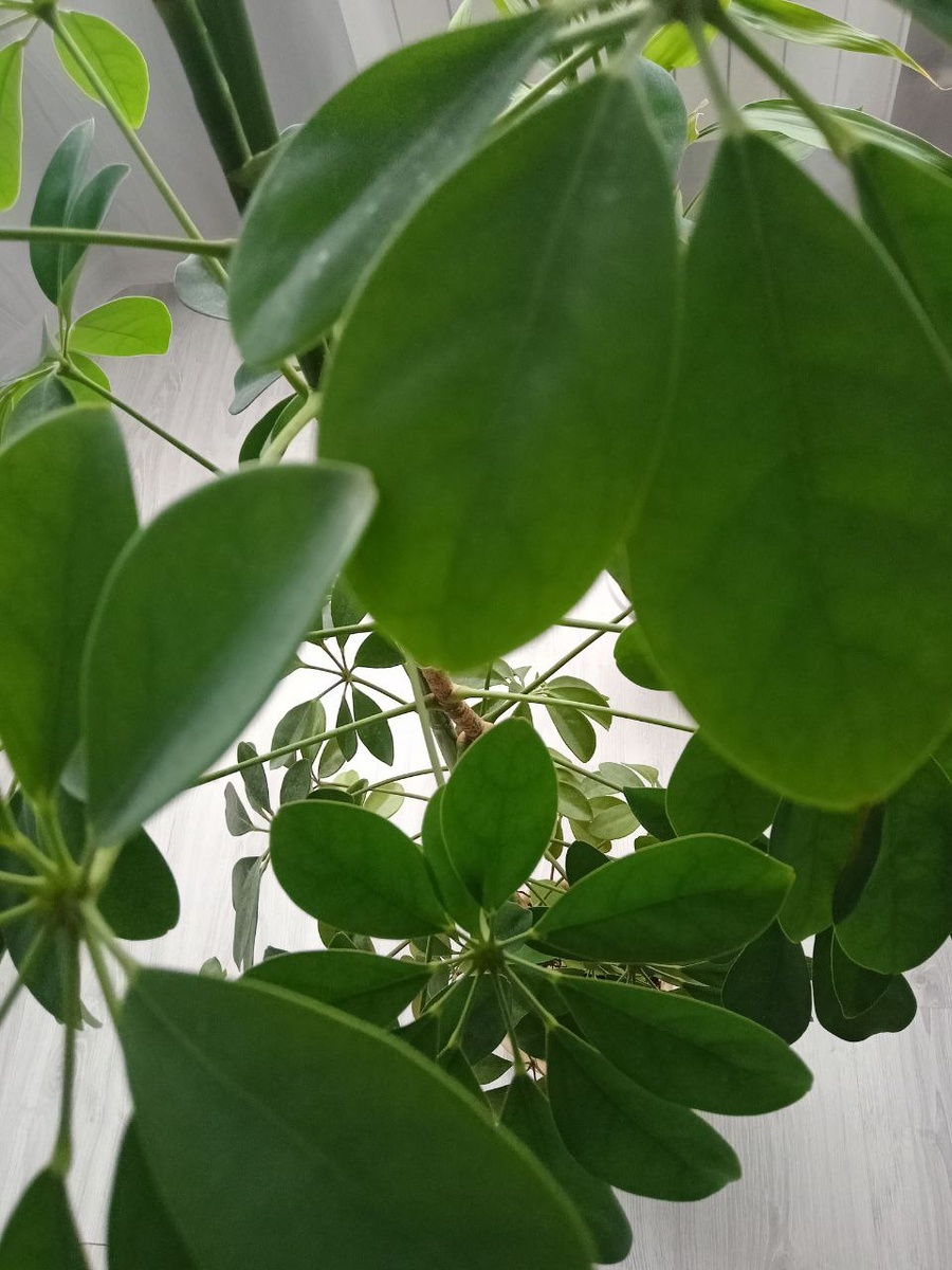 Шеффлера принадлежит семейству рода Araliaceae которое насчитывает огромное количество видов. Это медленно растущее растение, которое состоит из одного ствола и множества отходящих спиц, на конце которых расположились зонтиковидные листья. Щеффлера любит умеренный свет, слабо кислый грунт с добавлением питательных веществ. Полив в теплое время года можно увеличить до 3 раз в неделю, зимой же стоит уменьшить до 1 раза в 10 дней. Телеграмм канал Поддержать автора