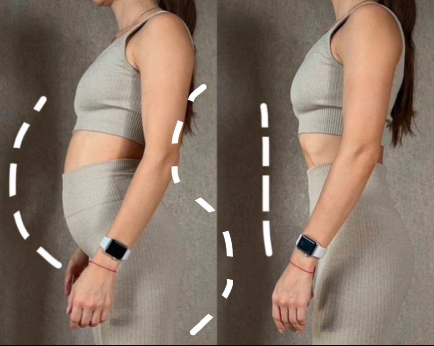 Что такое гиперлордоз и почему это важно? Девочки, всем привет и давайте разбираться Гиперлордоз – это избыточный прогиб в поясничном отделе позвоночника, который часто сопровождается «вываливанием» таза вперед. Такая осанка может казаться привычной, но на самом деле она нарушает биомеханику тела и может привести к: 1. Болям в пояснице из-за чрезмерного напряжения мышц. 2. Перераспределению нагрузки на суставы и мышечные группы. 3. Затруднению работы ягодичных мышц, что влияет на эстетику тела и его функциональность. Исправление гиперлордоза – это не только про внешность, но и про здоровье. Осанка влияет на то, как ваше тело движется и справляется с нагрузками. Гиперлордоз и диастаз: с чего начать? Если у вас гиперлордоз или диастаз, важно начать с проработки подвздошно-поясничной мышцы. Эта глубокая мышца часто находится в напряжении, усиливая прогиб в пояснице, мешая стабильности таза и правильной работе мышц кора. Чтобы расслабить и активировать эту зону, попробуйте упражнения из м