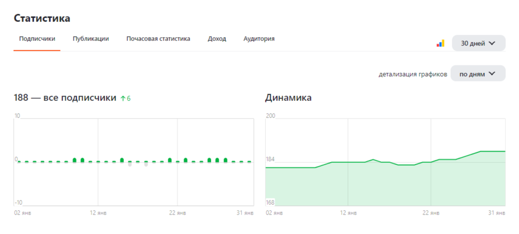 Итак, наверное самое время заглянуть в статистику и посмотреть что же там изменилось. А перемены есть. Напомню, что я решила провести небольшой эксперимент. И делать больше публикаций (чем обычно) примерно в течение недели. Не супер резко и не очень долго. Больше даже в лайт формате. Чисто для того, чтобы проверить работает это вообще или нет. Вот в этой статье писала о своей задумке. Во-первых, прибавилось немножко подписчиков. Чему я очень рада! Пусть немного, но наша компания увеличивается) Меня больше интересовали наверное показы. Именно этот показатель сейчас и посмотрим. А тут вот такая картина) Очень наглядно видно, как все было стабильно в начале января и изменилось после 20 числа.. То есть вывод сам за себя говорит: Дзен дает показы, но нужно что-то для этого делать. Я рада, что эксперимент удался! И теперь нужно подготовиться ко второму эксперименту в таком же духе) Кстати, я в этот раз даже не использовала длинные видео совсем. Только статьи и короткие ролики. И кажется, оди