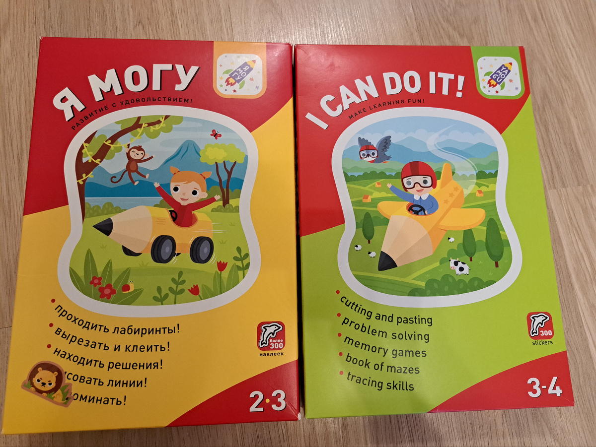 Мне давно писали в комментариях про эти пособия, оказывается, они реально классные! На новый год я купила Лере набор 2-3, а недавно по совету опять же в комментариях в ТГ (вот как без них, если все самое ценное именно там?), я приобрела набор 3-4 на английском языке, который вдвое дешевле русской версии (и спрашивается зачем платить больше, задания ведь все равно читаю я, а не Лера, поэтому неважно, какой язык).