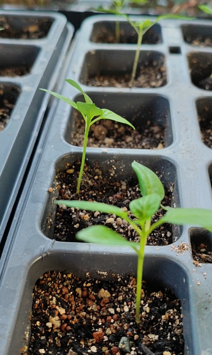 Декоративные перцы посаженные 5 недель назад пора пересаживать в большую емкость. Для посева брала семена "Четыре Лета". В пакетиках по 5 семян, но положили по 7 семян. Но в результате из каждого сорта и взошли по 5 ростков. Всхожесть не дружная, но это у всех декоративных перцев, часть уже начинает перерастать, а другие только проклюнулись. Сорта которые я использовала для посева: "Мексиканец" очень острый сорт, "Дракоша" перец средней остроты, и два сладких компактных перца "Тëма" с жёлтыми плодами и "Кузя" красно-коричневыми плодами. Я их называю декоративные, хотя они вполне пригодны для приготовления блюд и консервации. Но я их буду выращивать вместо цветочных растений, мне нравится их нарядный вид, когда на одном кусте одновременно зреют плоды нескольких цветов. Могу сказать по опыту выращивания, что перцы очень стойкие переносят и нашу южную жару и пересыхание почвы, и декоративные весь сезон, а на зиму можно занести в дом, и выращивать как комнатные растения.