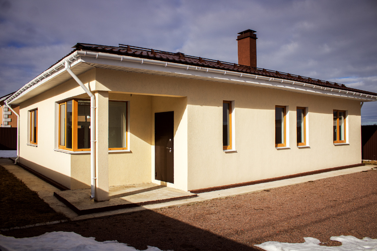 Уникальный дом из газобетона с красивым угловым окном на кухне. Общая площадь 173 м². Полезная площадь: 120 м². Планировка: :