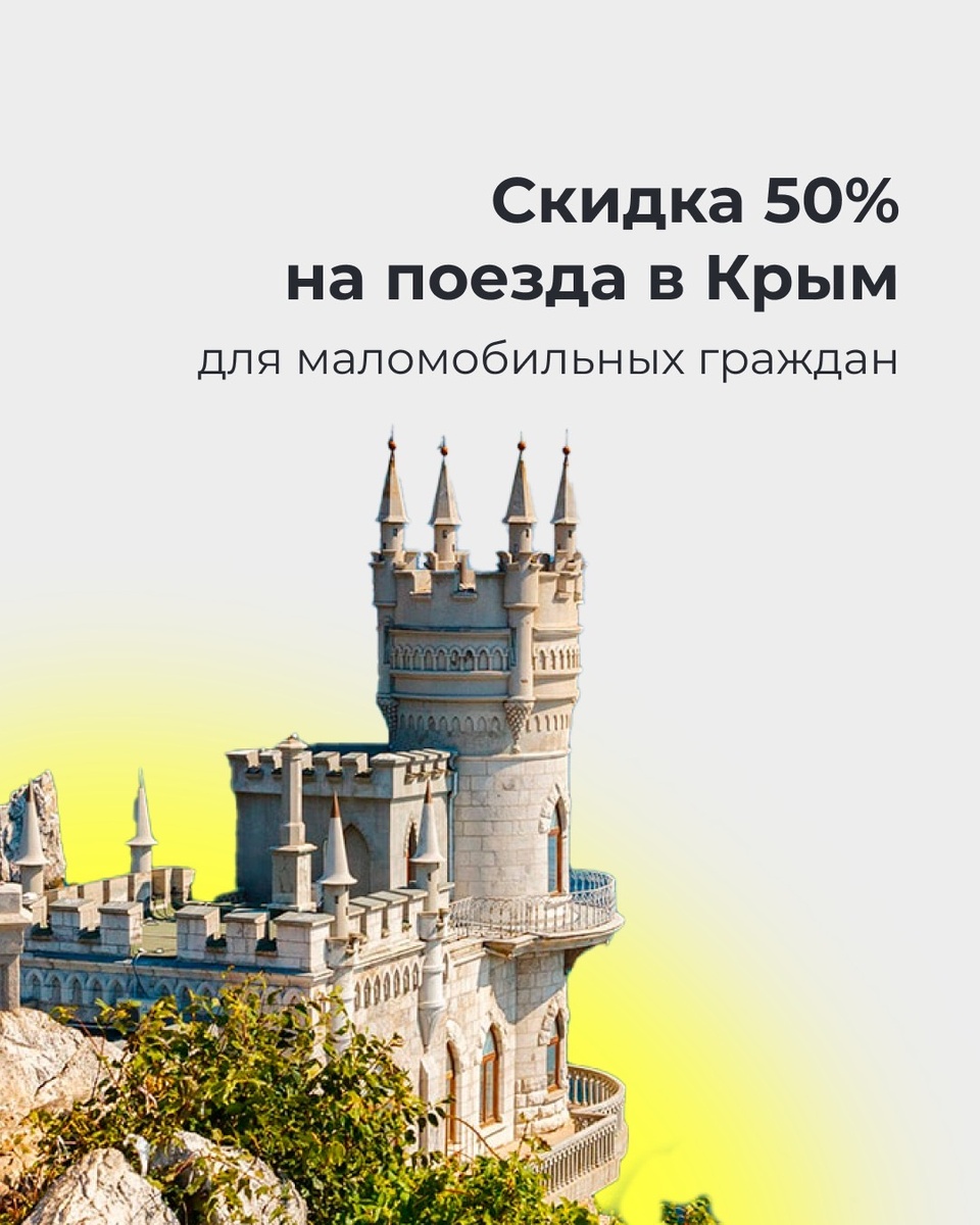 С 1 января 2025 года по 31 декабря 2025 года пассажиры с инвалидностью I группы, дети-инвалиды, а также сопровождающее их лицо могут оформить билеты со скидкой 50% на поезда «Гранд Сервис Экспресс», следующие в Крым и Севастополь.