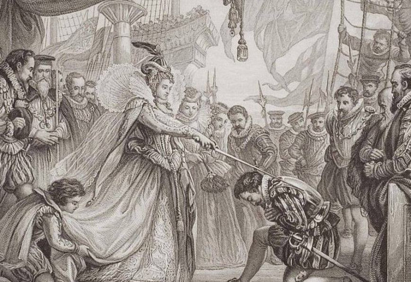 В апреле 1581 года королева Англии Елизавета I взошла на борт галеона «Золотая Лань», который недавно вернулся из кругосветного путешествия.