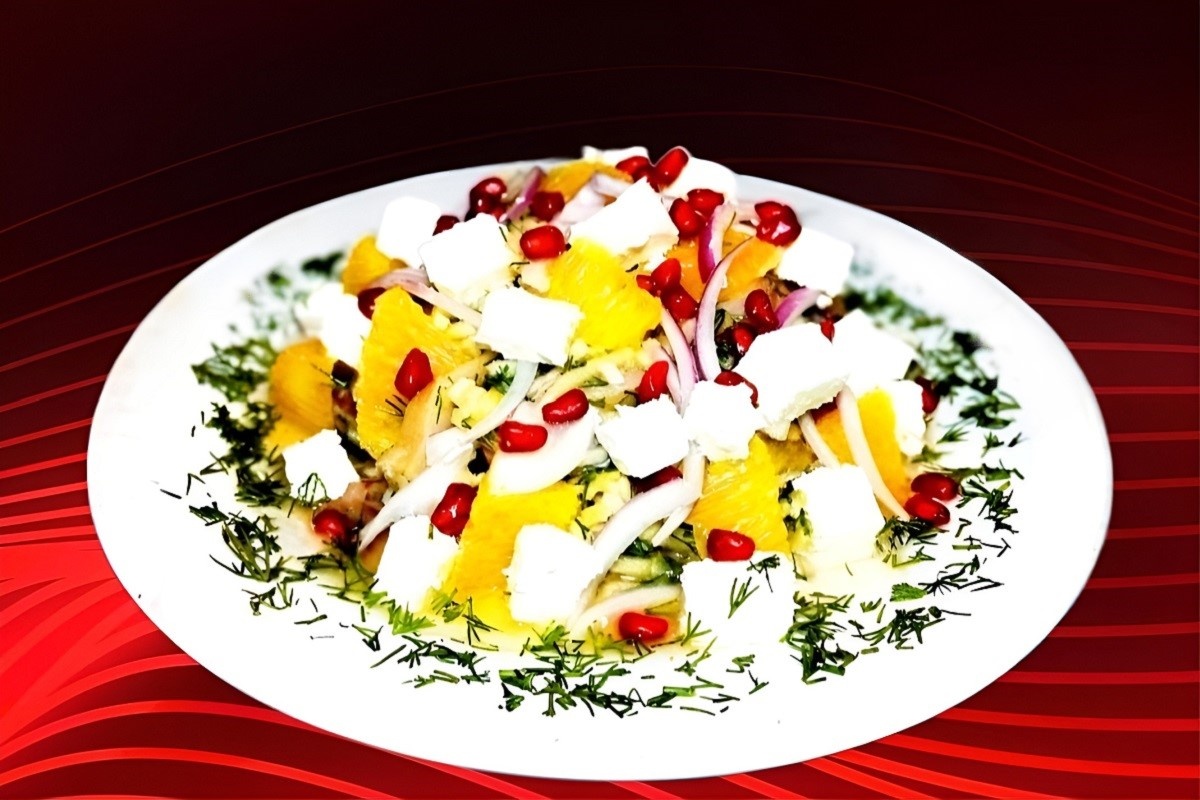 - Салат подаём сразу после приготовления, чтобы апельсины не успели пустить сок.