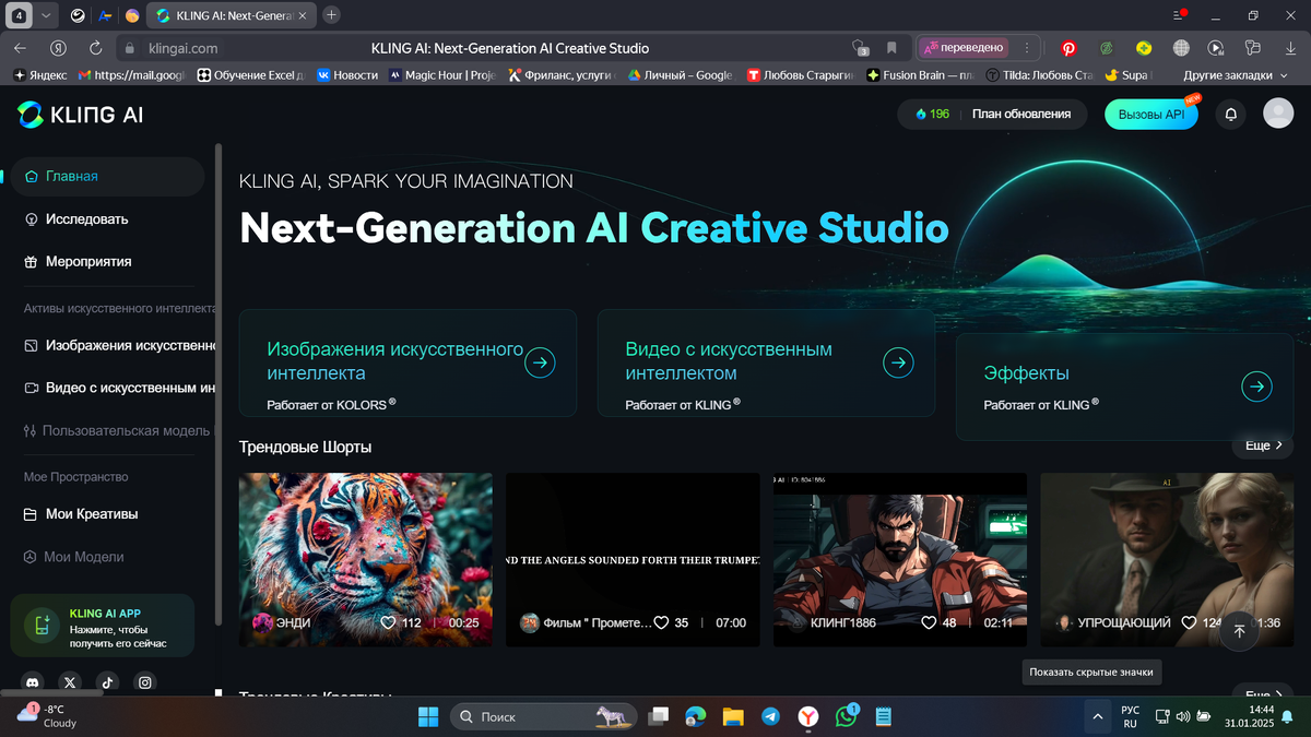 Сегодня я хочу рассказать вам о китайской нейронной сети Kling-AI, которая позволяет создавать видео из изображений с помощью искусственного интеллекта. Эта нейросеть может быть полезна для маркетологов и всех, кто хочет оживить свои идеи. Я в ней сделала себе видео визитку. Регистрация и бонусы Регистрация в сети проста и занимает всего несколько минут. При регистрации мне дали бонус в 366 кредитов, которые можно использовать для генерации изображений или видео. Главная страница После регистрации я попала на главную страницу, где увидела работы других пользователей. Свои работы также можно опубликовать и получить дополнительные кредиты. Создание видео Чтобы создать видео из изображений, нужно выбрать кнопку «Видео с искусственным интеллектом» и перейти на соответствующую страницу. Загрузка изображений С левой стороны страницы нужно загрузить свои изображения, от одного до четырёх. После загрузки можно выбрать движение камеры. Далее переходим к настройкам: оставляем режим стандартный