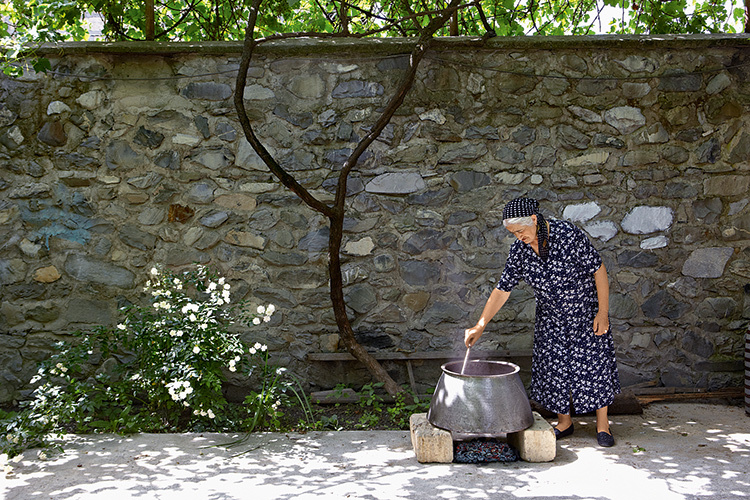 …Фатьма ханым приносит показать тяжелый, до блеска начищенный и явно хорошо поживший медный казан. С любовью поглаживает его по боку: «Остался от бабушки. Жаль, на плиту его нельзя поставить – видите, какое дно? В нем можно только на огне готовить, во дворе, а мы это редко теперь делаем. Бабушка говорила, что этот казан бездонный: в нем на всю семью приготовишь плов, да еще на гостей останется».