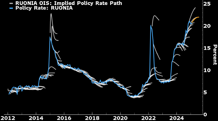 Bloomberg: ключевая ставка, вероятно, достигла пика на уровне 21%