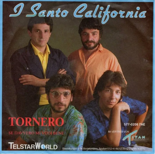 Здравствуйте, друзья. Эта группа занимает особое место в моей коллекции. Итальянская команда « I Santo California». Её я услышал на одной из передач времён СССР. Думаю, что это была передача «Арт Лото». Кстати, очень популярная была в те времена. И вот в этой передаче итальянцы и выступили с песней «Torneró». И с тех самых пор, я усиленно искал эту группу ради одной этой песни. И уже в ХХI веке я, все же, нашёл сборник группы. И сегодня хочу поделиться им с вами. Для этого переходим по ссылке. Слушаем. Сохраняем в коллекции. Благодарю за внимание. Пока. - I Santo California – 1977 - The Best Of I Santo California — 1977 Philips – 6325 901 France-LP https://disk.yandex.ru/d/BruATwYhGvDtEw