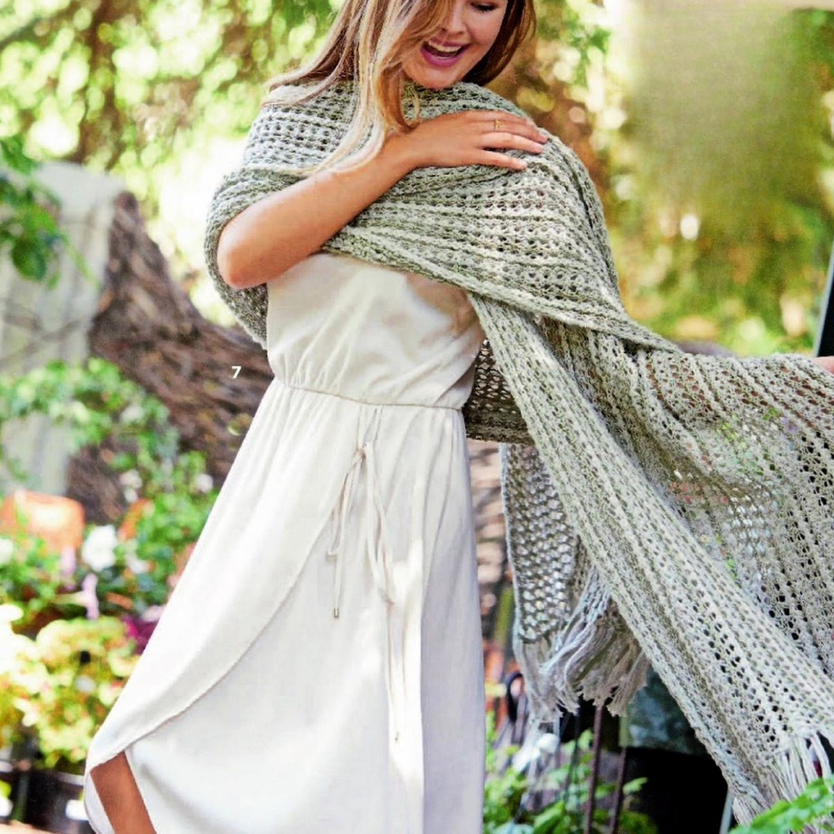 Внимание! При носке палантин немного растягивается. Размеры получены при измерении модели, разложенной на горизонтальной поверхности.