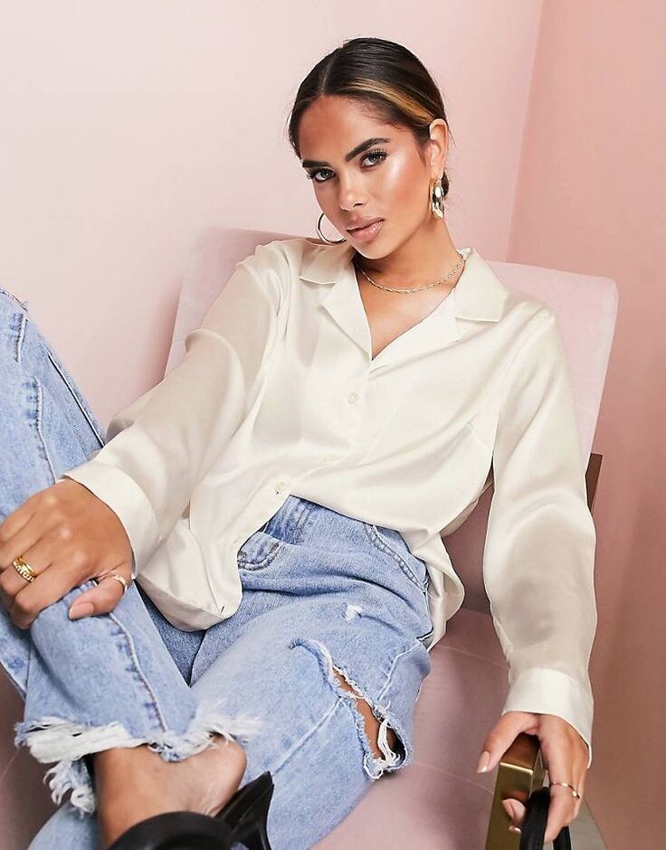 Первая обязательная вещь, которая должна быть в гардеробе — это атласная рубашка. Для начала попробуйте надеть рубашку белого, черного или цвета слоновой кости, если только вы не хотите экспериментировать с более яркими цветами. Носите ее с джинсами, офисными брюками, кожаной юбкой или с сарафаном.