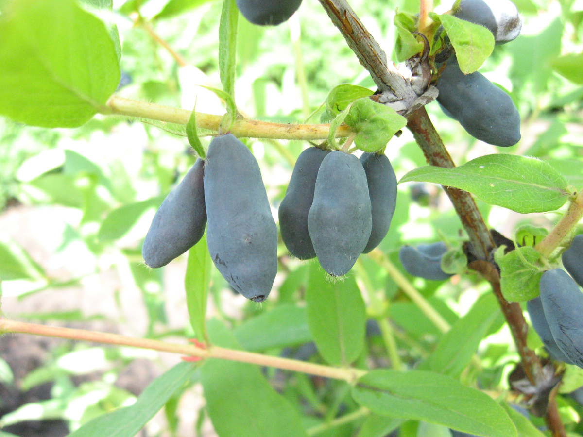 - ‘Голубое веретено’ — ранний сорт с удлиненными ягодами сладко-кислого вкуса. Урожайность — до 2 кг с куста.