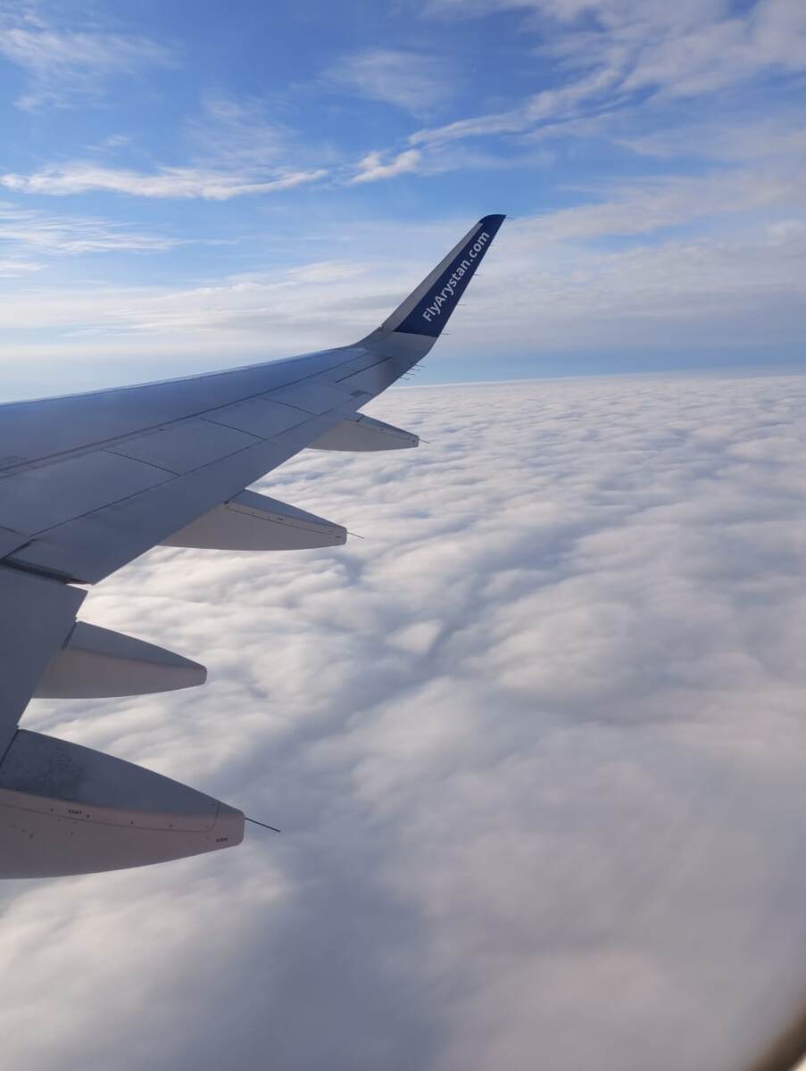 Когда мы взлетали, у нас было пасмурно, а подлетая к Астане, появилось солнце, я сидела возле окна, смотрела на облака, которые были подо мной, как же классно! Моими соседями были пожилая пара, всю дорогу они молчали. Чтобы не отвлечься, я читала книгу про то, как в организме женщины происходит процесс зачатия, так себе, скучновато, зато это отвлекло мои мысли.
