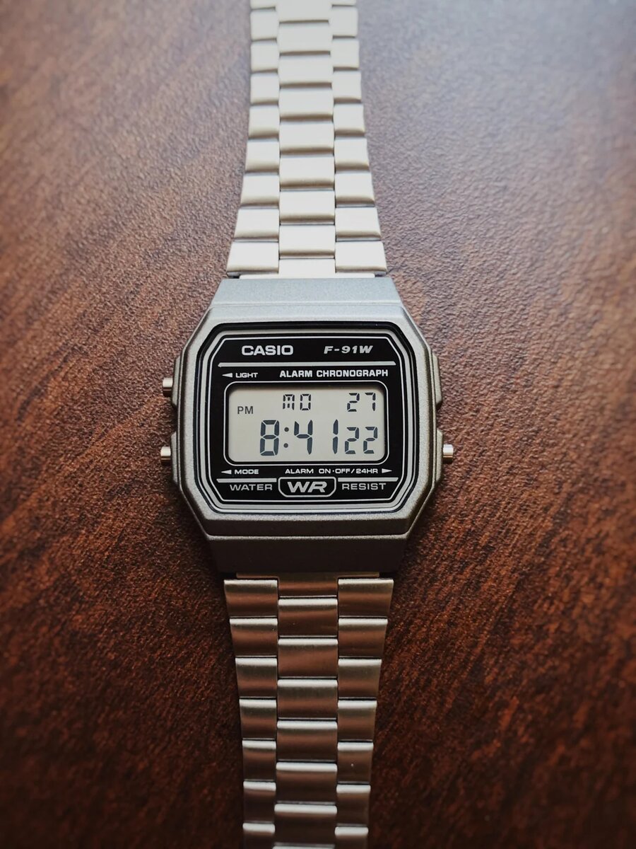 В мире наручных часов есть модели, которые становятся настоящими легендами. Одна из них – Casio F-91W. Этот цифровой хронометр появился в 1989 году и до сих пор остаётся одним из самых популярных и узнаваемых аксессуаров. В чём секрет его успеха? Давайте разберёмся. Casio F-91W – это минималистичный и практичный аксессуар, который идеально сочетает в себе надёжность и удобство. Прямоугольный корпус, небольшой экран с чёткими цифрами, три кнопки управления – ничего лишнего. Вес всего 21 грамм, а толщина 8,5 мм, что делает модель лёгкой и комфортной в повседневной носке. Несмотря на простоту, в F-91W есть всё необходимое: